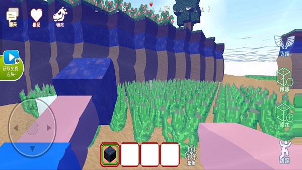 1、便捷搭建操作:添加和移除的按钮十分直观,方块切换便捷,无需复杂流程即可快速改造地形、搭建建筑,让创作想法能高效落地,降低沙盒创作门槛。