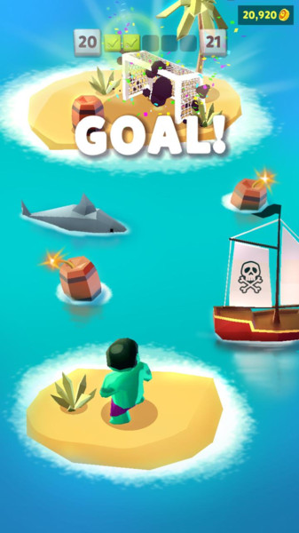 3、进球后显GOAL!,获金币,推进关卡,挑战更多射门场景。