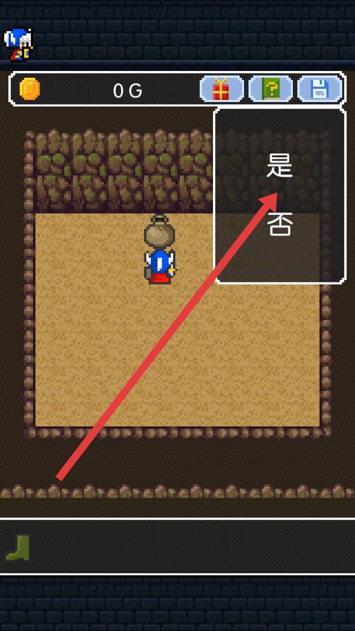 2、面对角色面前的罐子需要点击查看,会跳出是/否的选择框,点击箭头指向的是,召唤出NPC。