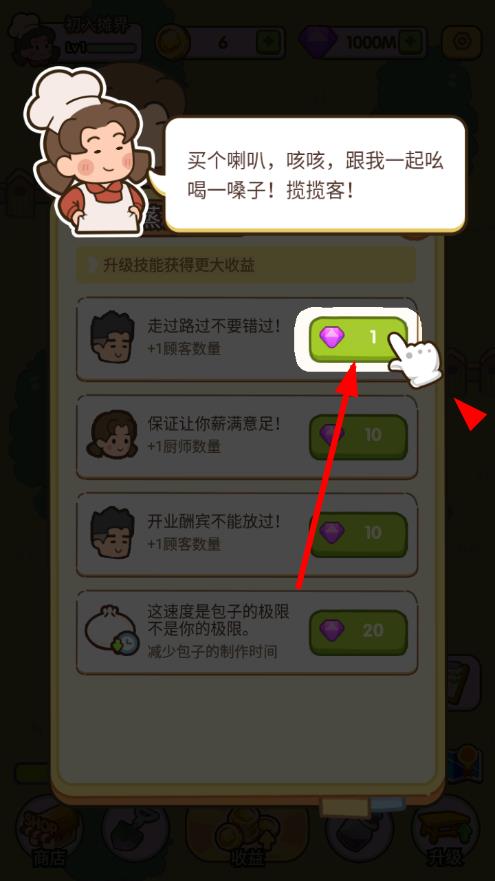 3、完成关卡目标获得丰厚收益,解锁新的食材和经营道具,扩大摊位规模,在与其他玩家的竞争中占据优势。