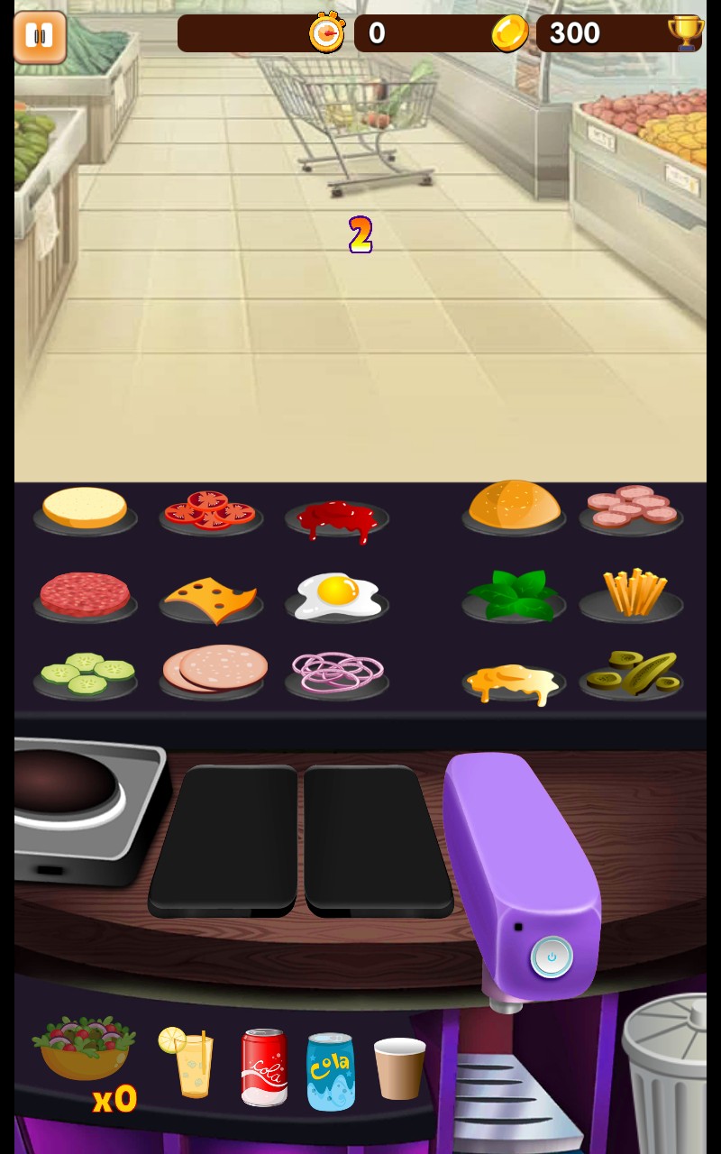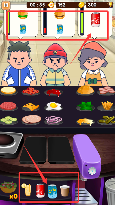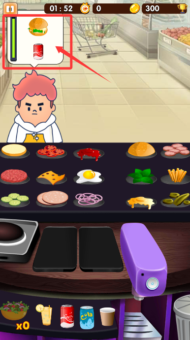 3、依据订单要求,从食材区选取对应材料,快速制作餐品、拿取饮料。