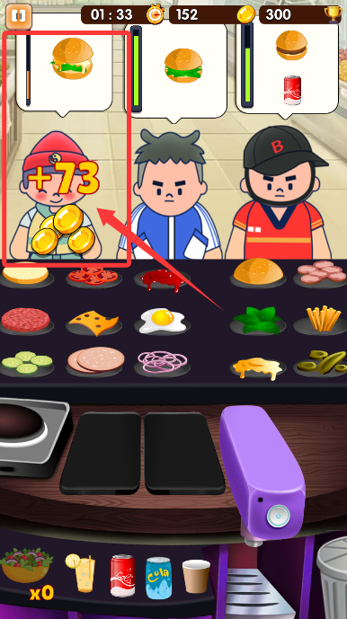 2、将备好的餐品、饮品及时交付给对应的顾客,可获取金币奖励。