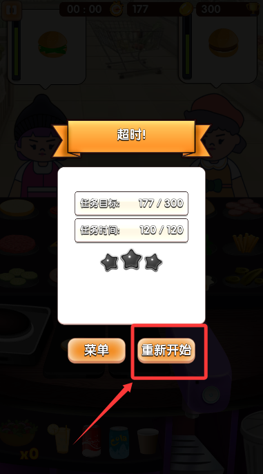 4、若超时未达成任务目标,可点击“重新开始”,再次挑战关卡。