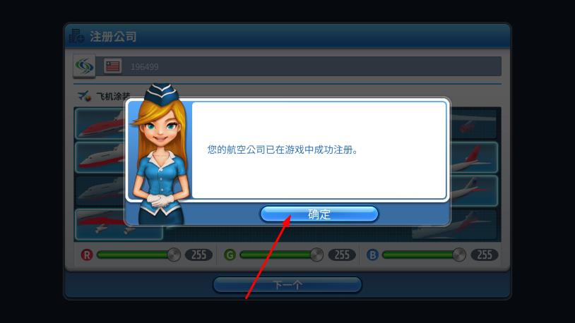 1、完成公司注册后,点击“确定”进入主界面,准备开展航空业务。