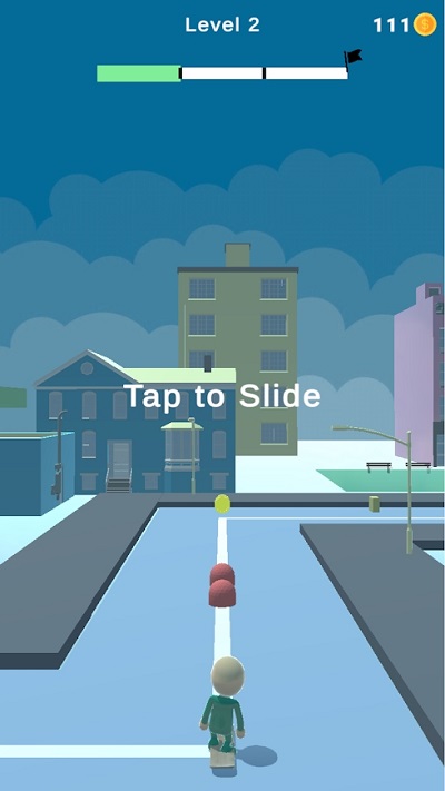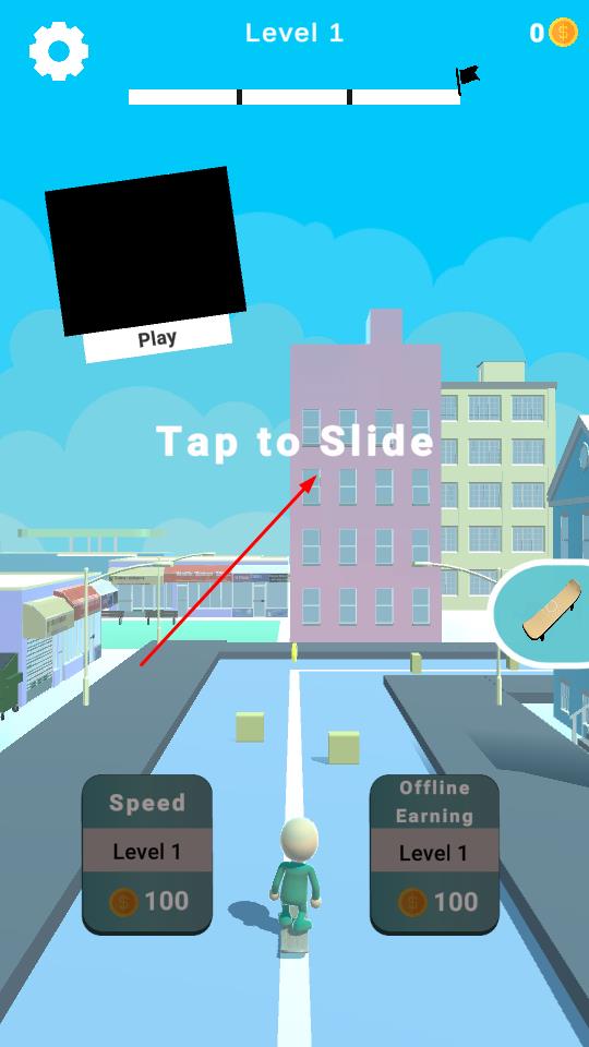 1、进入游戏界面后,依据Tap to Slide提示点击操作,开启滑板挑战,开启趣味之旅。