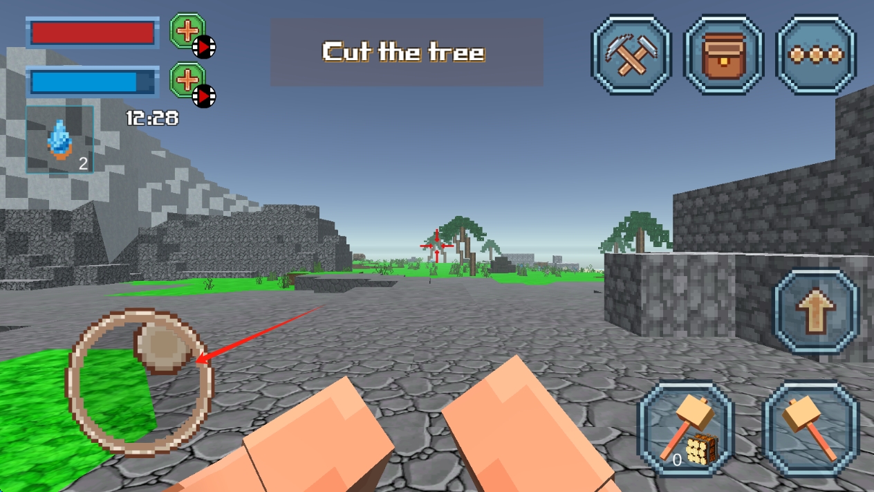 2、游戏中,通过左侧摇杆移动角色,前往树木位置,准备执行Cut-the-tree任务,拨动轮盘移动人物。