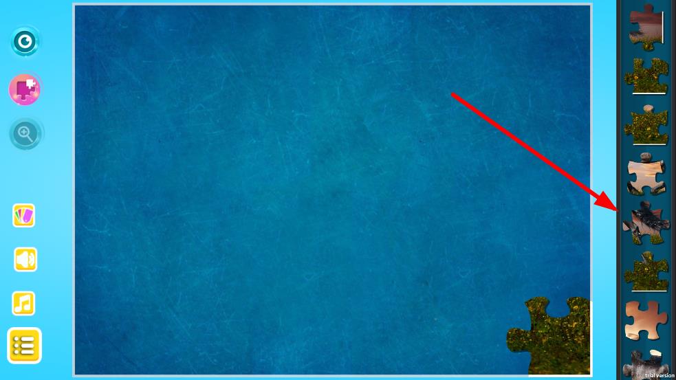 2、右侧为分散的拼图块,通过拖动操作,将方块对应嵌入主拼图区空缺;遇困难可点击左侧提示按钮,如放大镜、彩色图标,获取拼接线索。