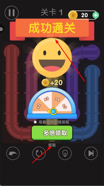 3、成功通关后,点击“领取”获取金币奖励,可选择“多倍领取”(观看视频 )提升收益。