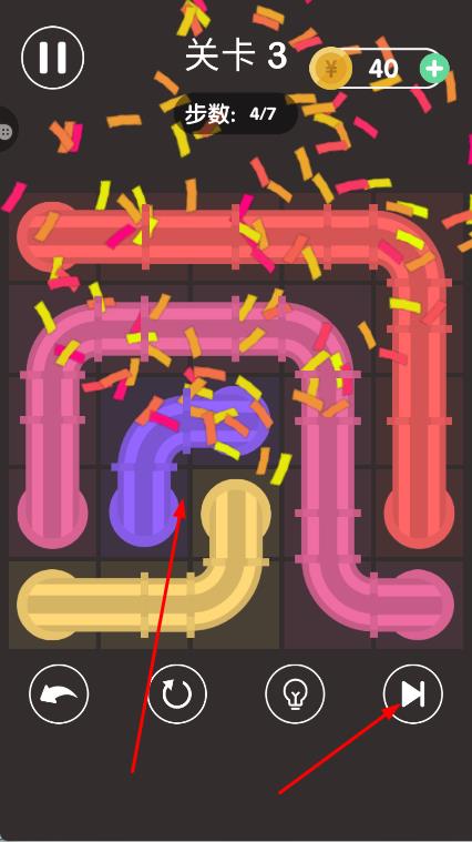 2、匹配颜色完成串联:将同色水管的两端通过旋转管道连接,形成无断点的完整路径,确保颜色对应且连接顺畅,达成关卡要求。