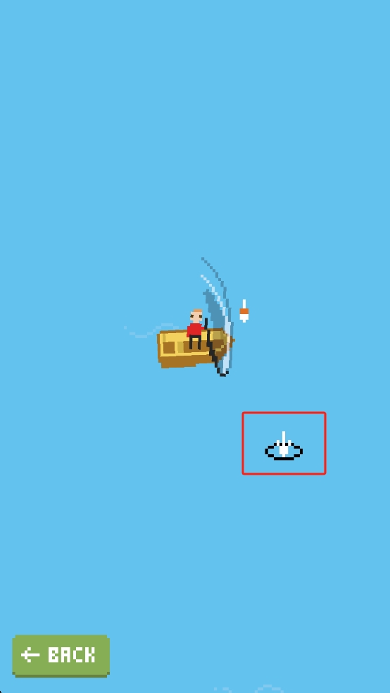 2、钓鱼时当红框内出现鱼漂标识,点击触发钓鱼,等待鱼咬钩后,适时拉杆,注意力度和节奏,避免鱼脱钩。