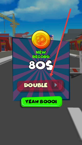 3、当游戏进入结算界面,若想双倍奖励点击DOUBLE看广告,或点YEAH-BOOOI直接领取80美元。