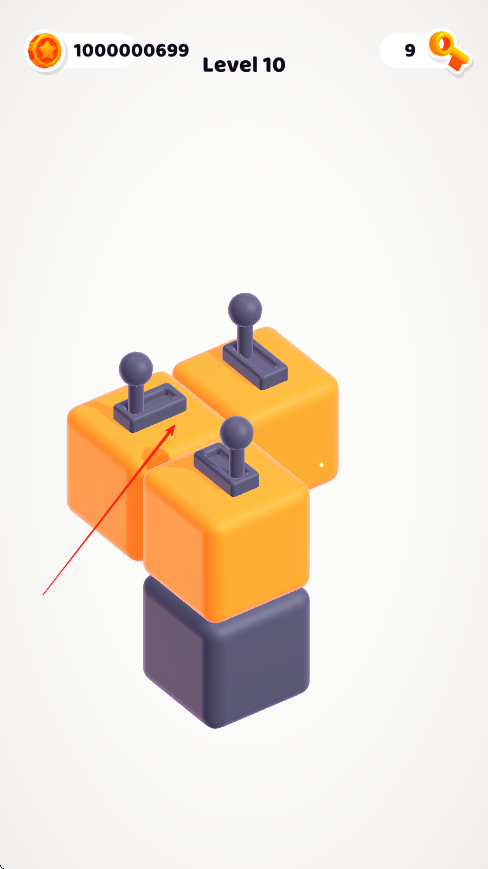 2、先将其中一个可以移动的方块挪动开,就能顺势将所有移动的方块解开,中间就会出一个关键按钮。