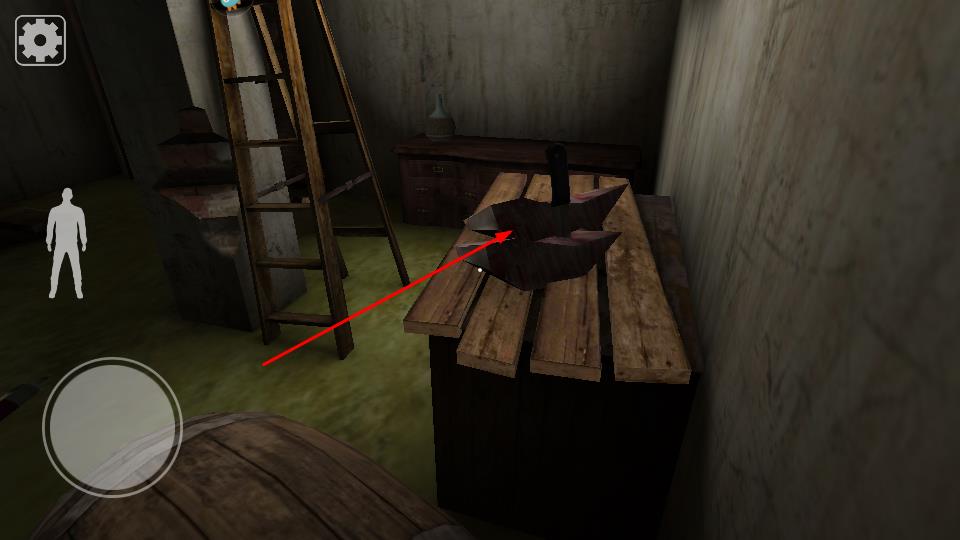 3、发现道具桌上武器时,按箭头提示互动获取,利用道具应对后续恐怖挑战,解开谜题。