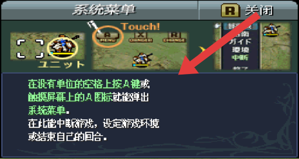 2、在无单位的空格按A键或点击屏幕A图标,呼出系统菜单,可中断游戏、设定环境或结束回合。