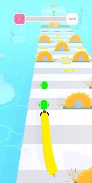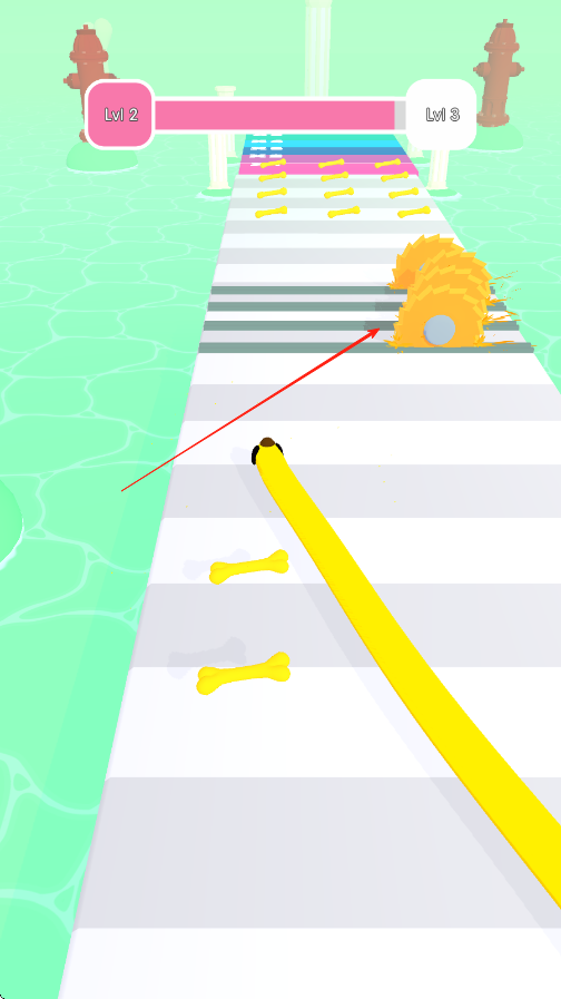 2、收集越多的骨头,香肠狗就会变得越长,要注意躲避前方的障碍,尾巴没有经过障碍就会被切割。