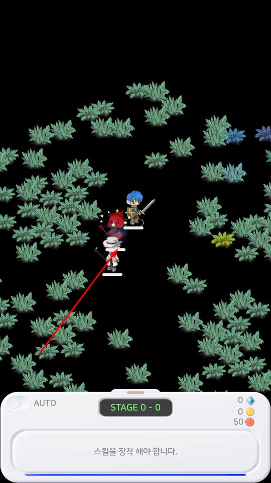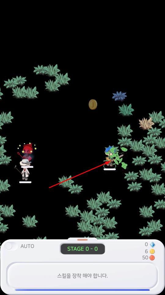 1、进入游戏场景STAGE0-0,操控角色在草丛区域移动,靠近敌人如红帽、绿皮怪物触发战斗。