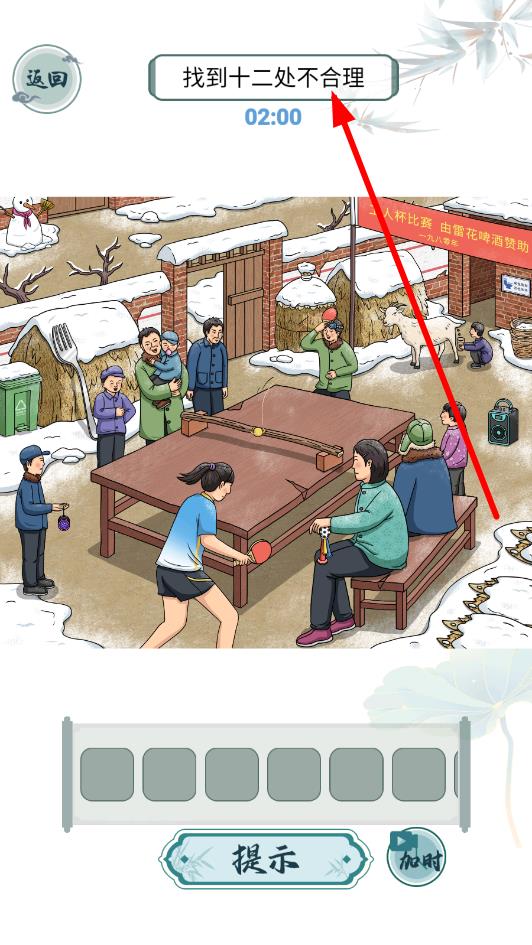 3、成功找出所有答案,如找齐“十二处不合理”,即可通关,解锁新关卡。若遇难题,可使用“提示”功能获取线索,持续挑战更难关卡。