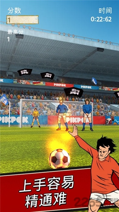 1、划刷踢射直观控制:采用直观的“划刷踢射”控制方式,从球场各处轻拂手指可完成曲线球、吊球、传球及射门等动作,既易于上手,又对高手深具挑战性。