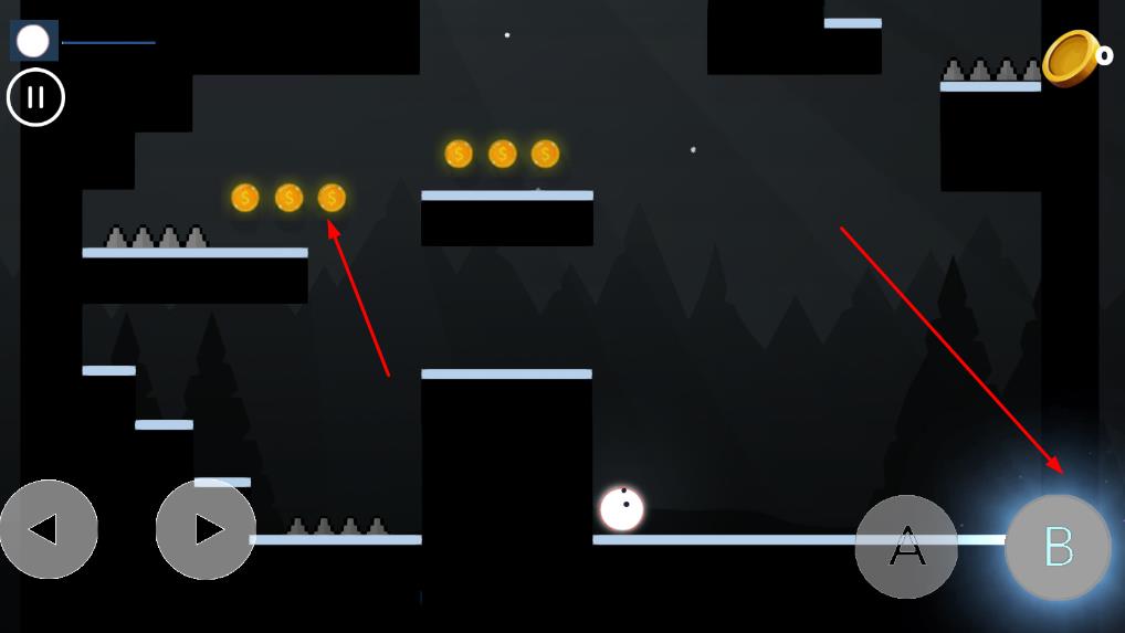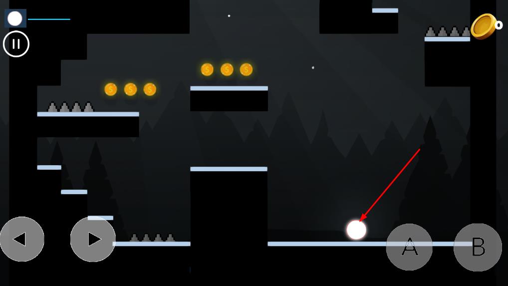 1、魔法球处于关卡起点,前方出现首批障碍物,准备开始操控魔法球展开冒险。