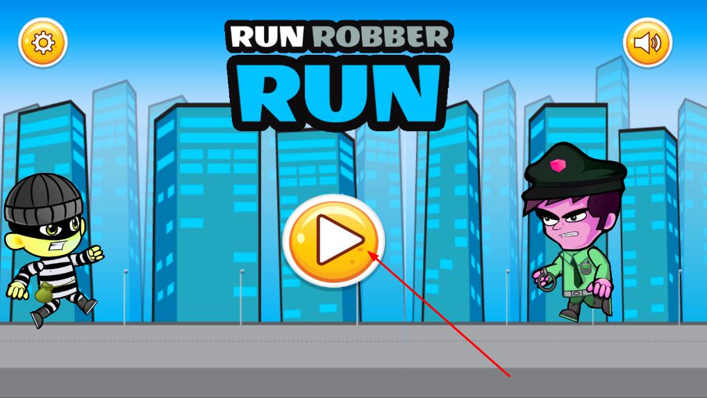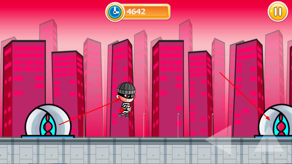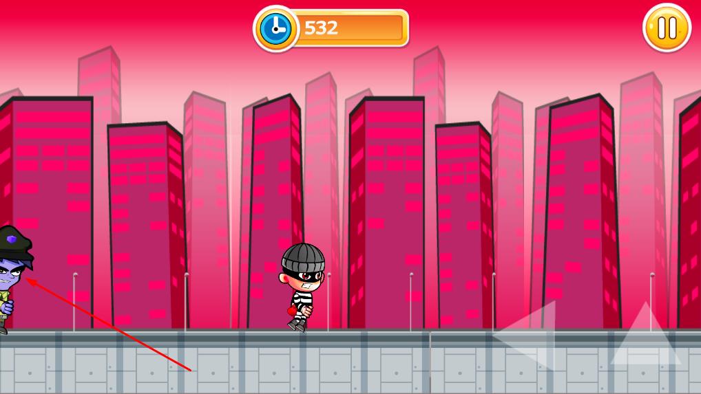1、点击开始进入初始街道场景,滑动屏幕可控制抢劫犯左右移动或跳跃。