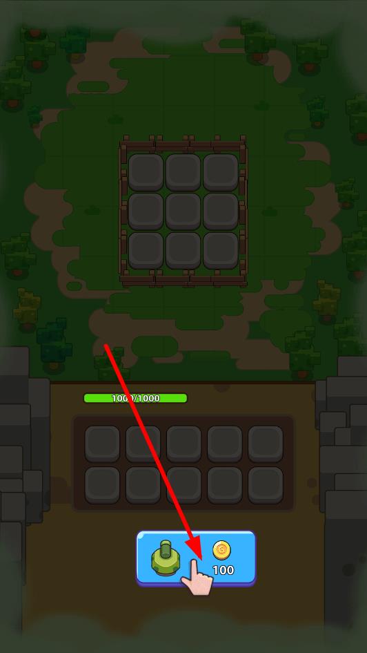 1、在初始界面点击花费金币,如100金币的按钮,在地图的空格区域放置基础防御塔,开启塔防布局,熟悉放置操作与资源消耗逻辑。