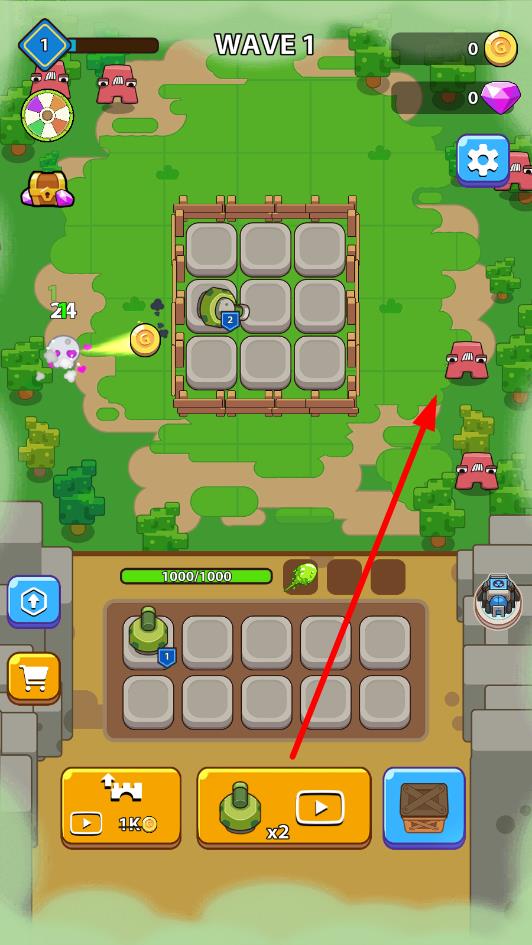 3、波次战斗应对:关注“WAVE”波次提示,每波敌人来袭前,补全防御空缺、升级薄弱塔。战斗中观察敌人走向与塔攻击效果,确保成功抵御。