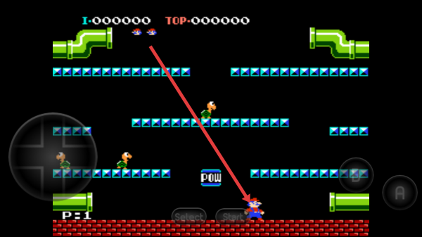 1、操控虚拟十字键移动马里奥,避开乌龟敌人,利用管道切换场景,熟悉基础操作,查看地形。