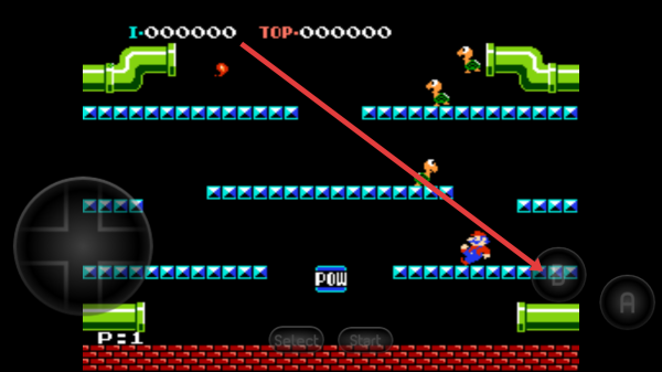 2、遇到乌龟时,可跳跃踩踏使其翻转,或借助场景元素,如POW块消灭敌人,获取分数,注意躲避敌人。
