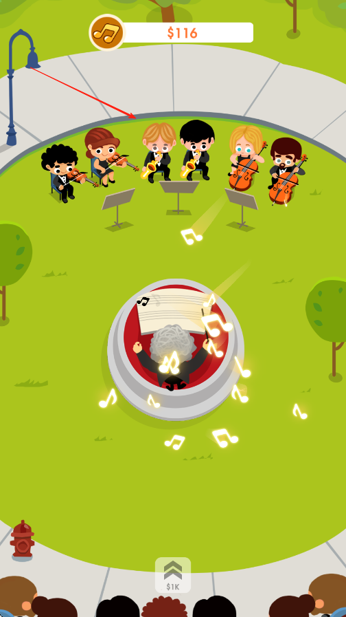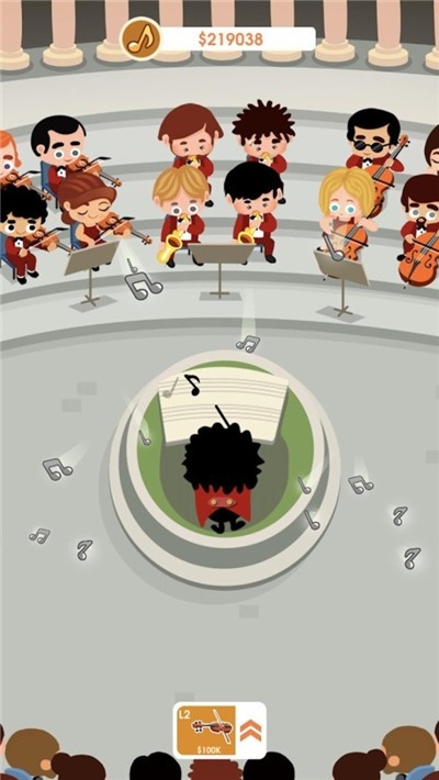 1、进入游戏后,各个演奏家会开始奏乐,指挥家在前方只会,演奏家会奏出很多的音符。