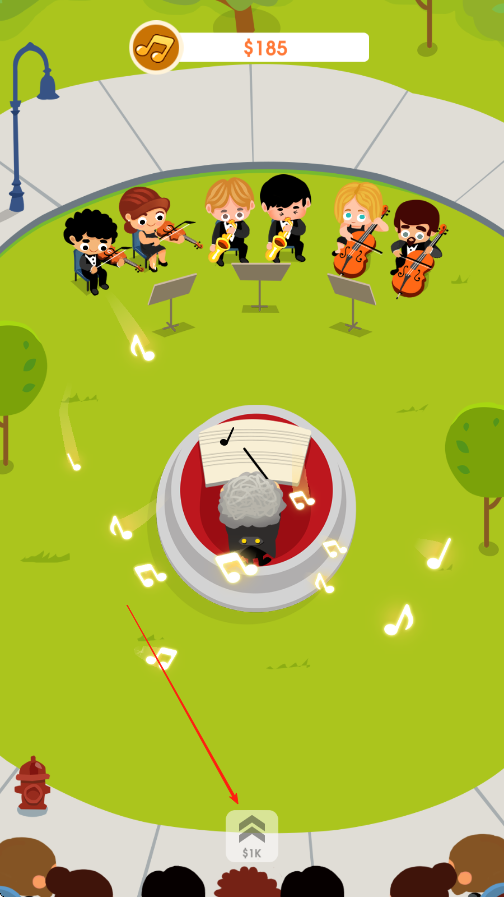 2、我们需要做的是捡起这些演奏出的音符,点击即可拾取,音符会转换为金钱,音符一段时间不拾取,则会消失。