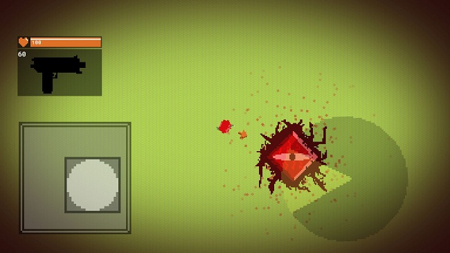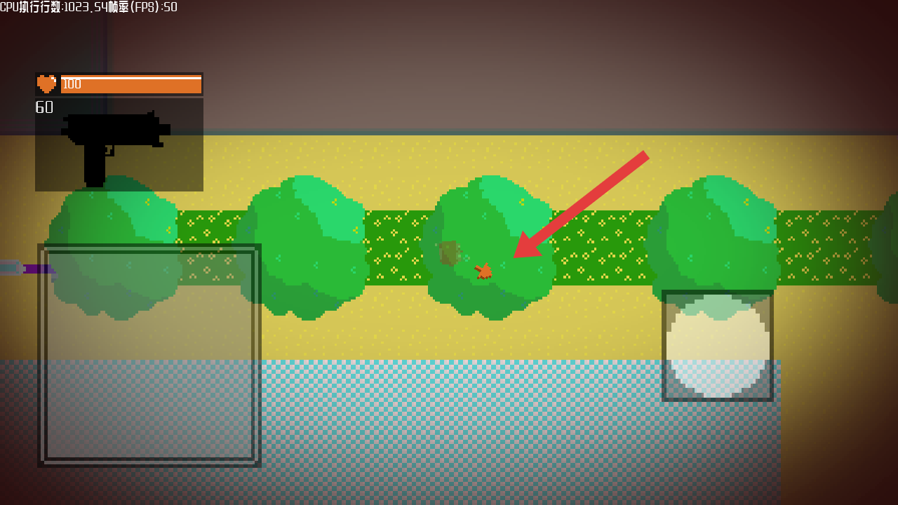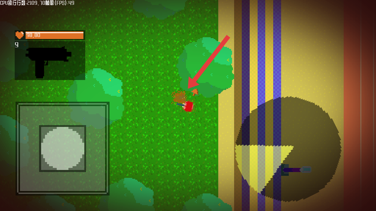 3、遭遇红色敌人后,操控角色借助左侧移动、右侧射击键攻击敌人,消耗其血量,完成战斗目标。