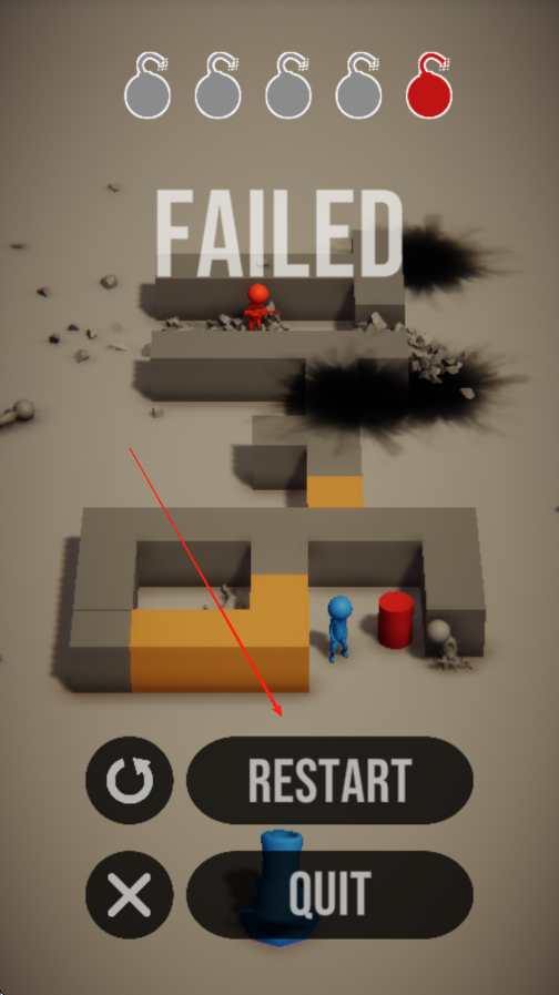3、一定要在规定炸弹数量内,炸掉所有小红人,如果炸弹全部用完,场上还有小红人,游戏也会失败。