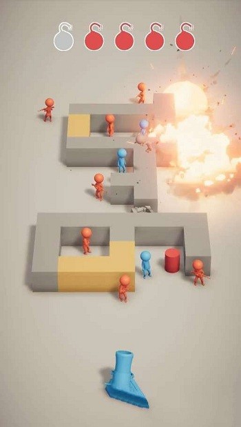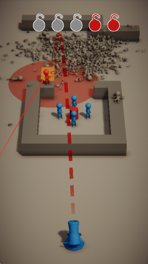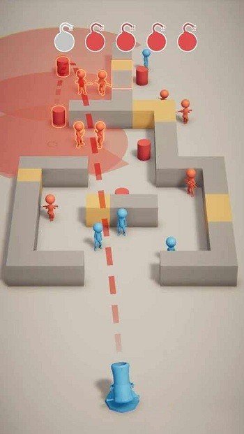 2、场景利用策略:留意场景中的障碍物,可借助其遮挡其他小人,为攻击红色小人创造安全角度,同时避免炸弹反弹误伤非目标小人,提高任务完成率。