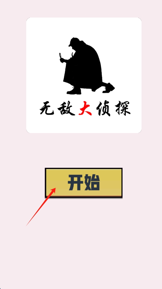 1、点击开始按钮,进入无敌大侦探游戏,开启解谜之旅,点击开始按钮进入游戏。