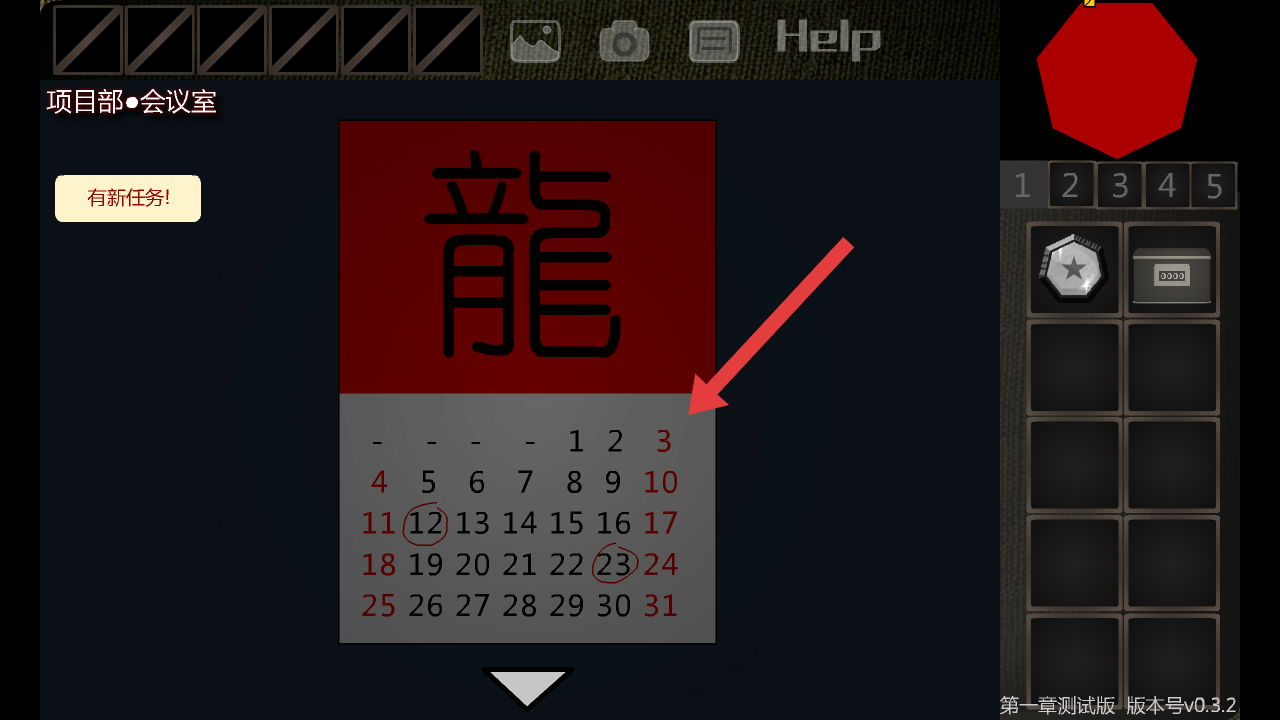 3、需要查看场景内日历,留意圈注的12、23等日期,从中探寻密码盒解谜所需的关键线索。
