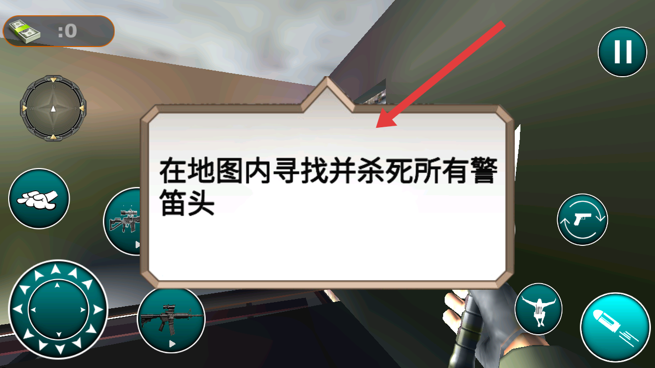 2、进入游戏后,就会接收到任务在地图内寻找并杀死所有警笛头,明确目标后展开探索。