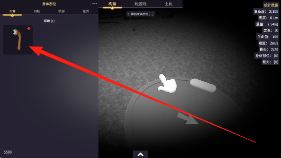 1、进入游戏后,在初始界面浏览基础部件,挑选合适的零件拼接出第一个简易生物,观察它的活动状态,开启充满创造欲的关卡之旅。
