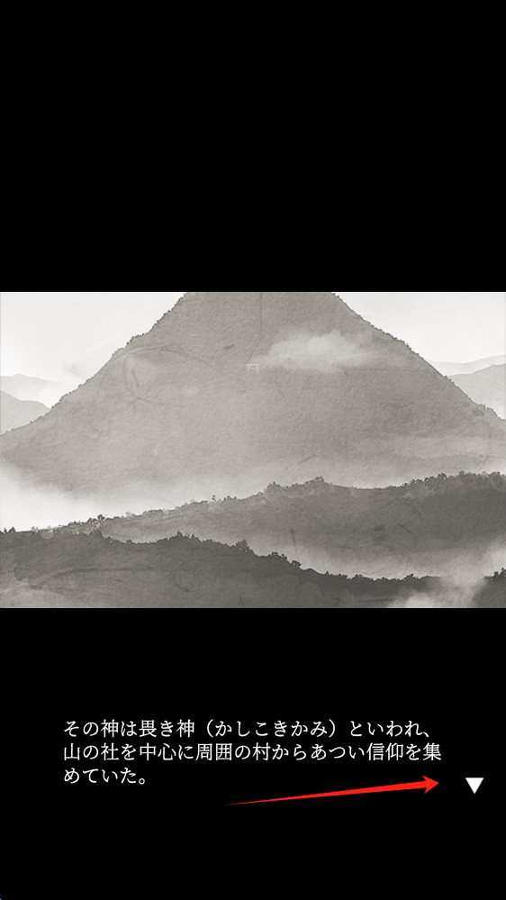2、剧情界面点击箭头,推进故事发展,了解畏き神相关背景,为逃脱收集线索,点击继续游戏。