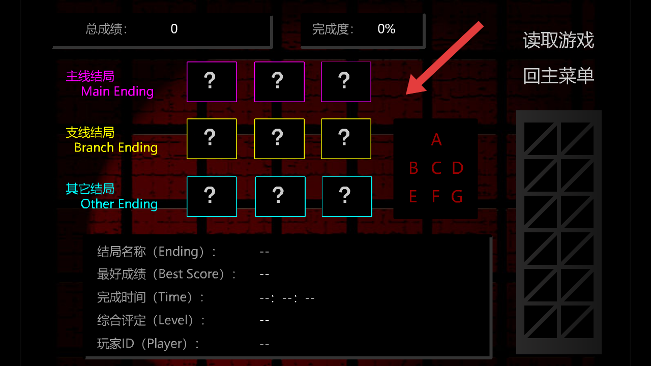 1、进入的结局界面,可以见主线结局、支线结局、其它结局分类,推进游戏可以解锁不同结局内容。