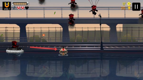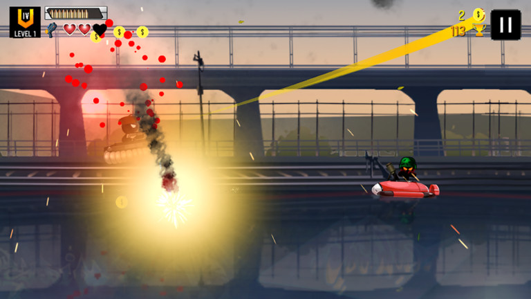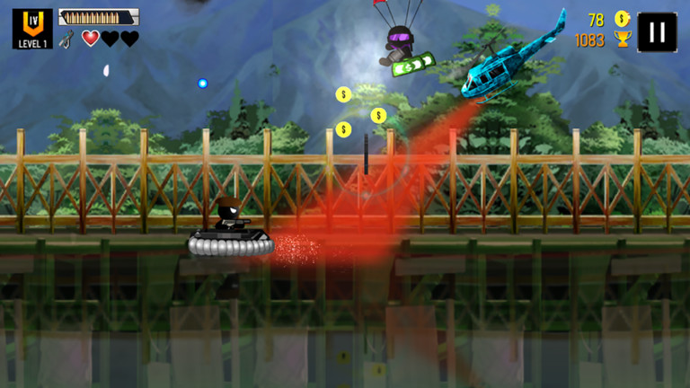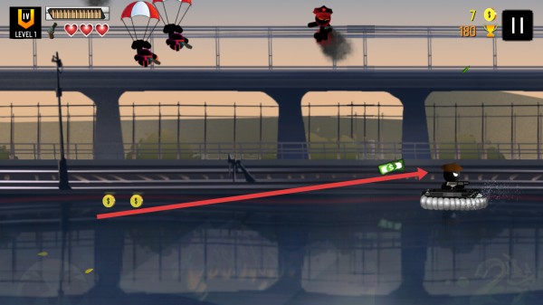 1、操控气垫船移动,利用武器射击桥上、空降的敌人,优先攻击靠近的目标,减少对自身的伤害。