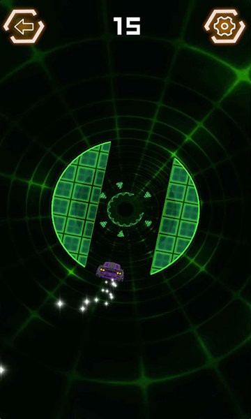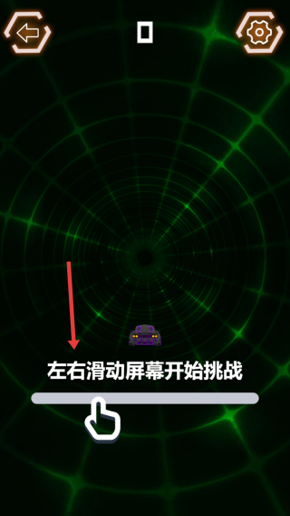 1、点击开始游戏进入汽车迷盘,左右滑动屏幕操控紫色汽车,在隧道躲避绿色方块。