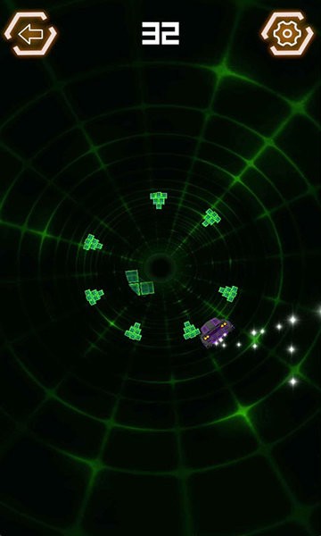 2、沿绿色网格隧道前行,灵活滑动调整方向,避开障碍,保持行驶不碰撞。