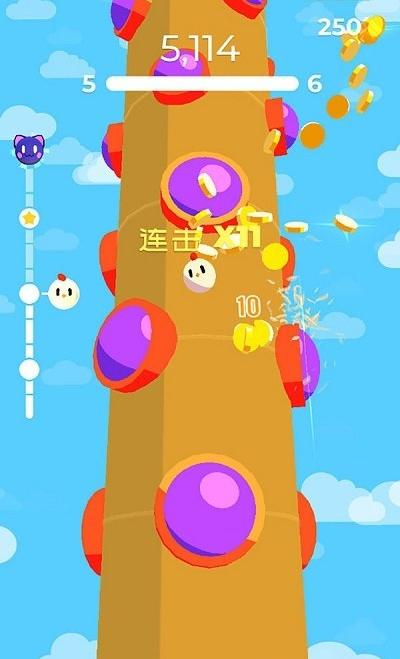 1、控制角色精准跳跃:用户通过简单操作控制角色向上跳跃,在跳跃过程中需精准把握时机,确保角色能落在合适的平台上,避免掉落,同时尽可能收集途中的金币。