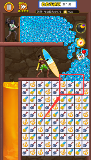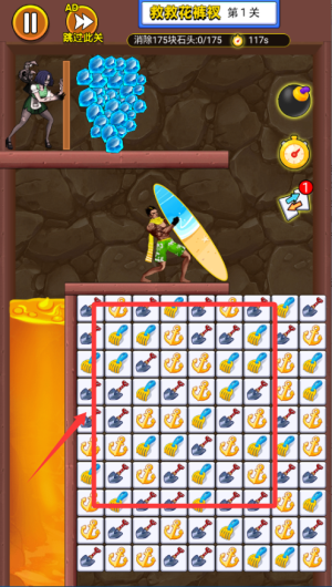 1、进入游戏后先熟悉消除机制,通过滑动屏幕将相同颜色的方块连消,为角色打通逃生路线。