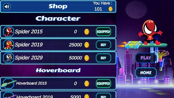 3、动感视觉体验:滑板滑行的流畅动画、蜘蛛侠套装的酷炫特效,搭配关卡中明快的场景设计,营造出充满活力的视觉氛围,增强游戏的沉浸感。