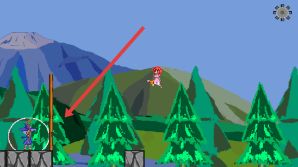 2、在森林的场景里,找到左下角被圈注的角色,与之进行对话互动,长按屏幕生出木材过河。