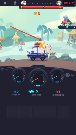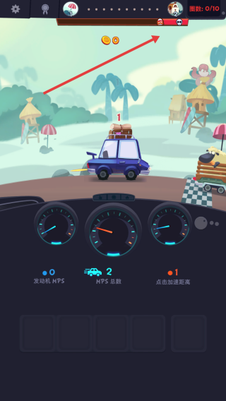 2、驾驶车辆在道路前进,避过对手攻击,收集金币,关注右上角进度,推进目标。