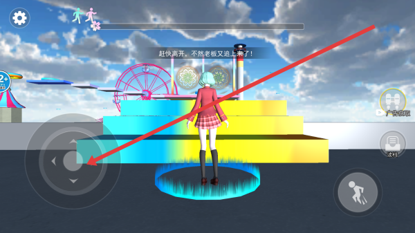 2、在跑酷场景,用虚拟摇杆控制方向,避开障碍,借助场景道具,如加速带快速的逃离。