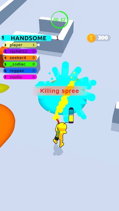 3、在规定时间内,若自身涂色范围最广或击败对手数量最多,则判定为胜利,系统发放奖励,解锁更高级的枪支和颜色,开启下一场更激烈的油漆战斗。