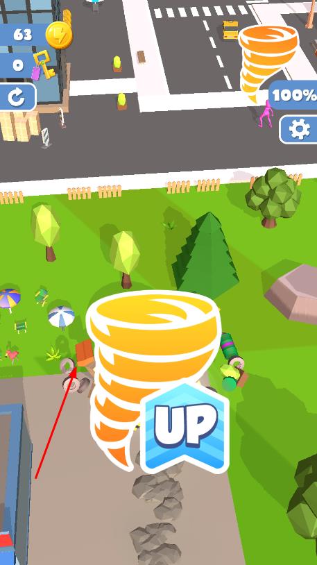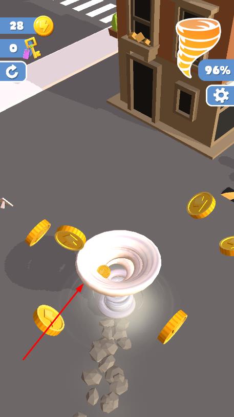 1、控制移动精准吞噬:通过滑动操控龙卷风移动,瞄准场景中的目标物品,使其进入风圈完成吞噬,积累成长所需的能量,逐步扩大体型。